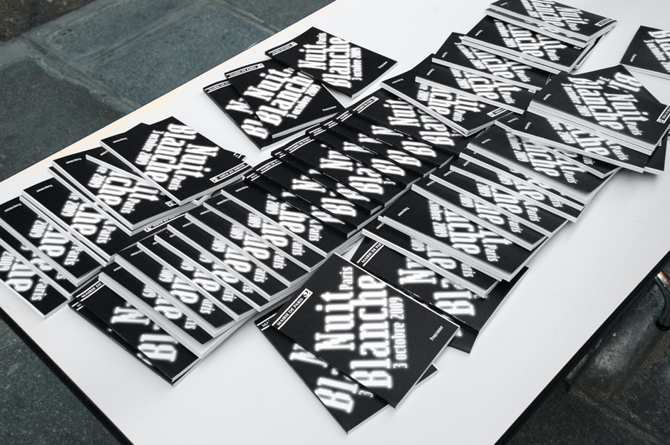 8th edition of the parisian "Nuit Blanche", based on numerical and visual arts : Typographic design layed all over the differents kinds of materials the event needs.